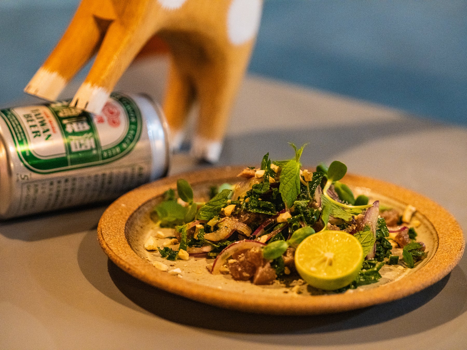 鶏ガラ、あご、香味野菜、スパイス、ハーブを合わせたオリジナルの出汁を使うなどベースは本格的ながら、日本の馴染みある料理や食材を、アジア料理に再解釈したクリエイティブな仕立ての料理を提供。