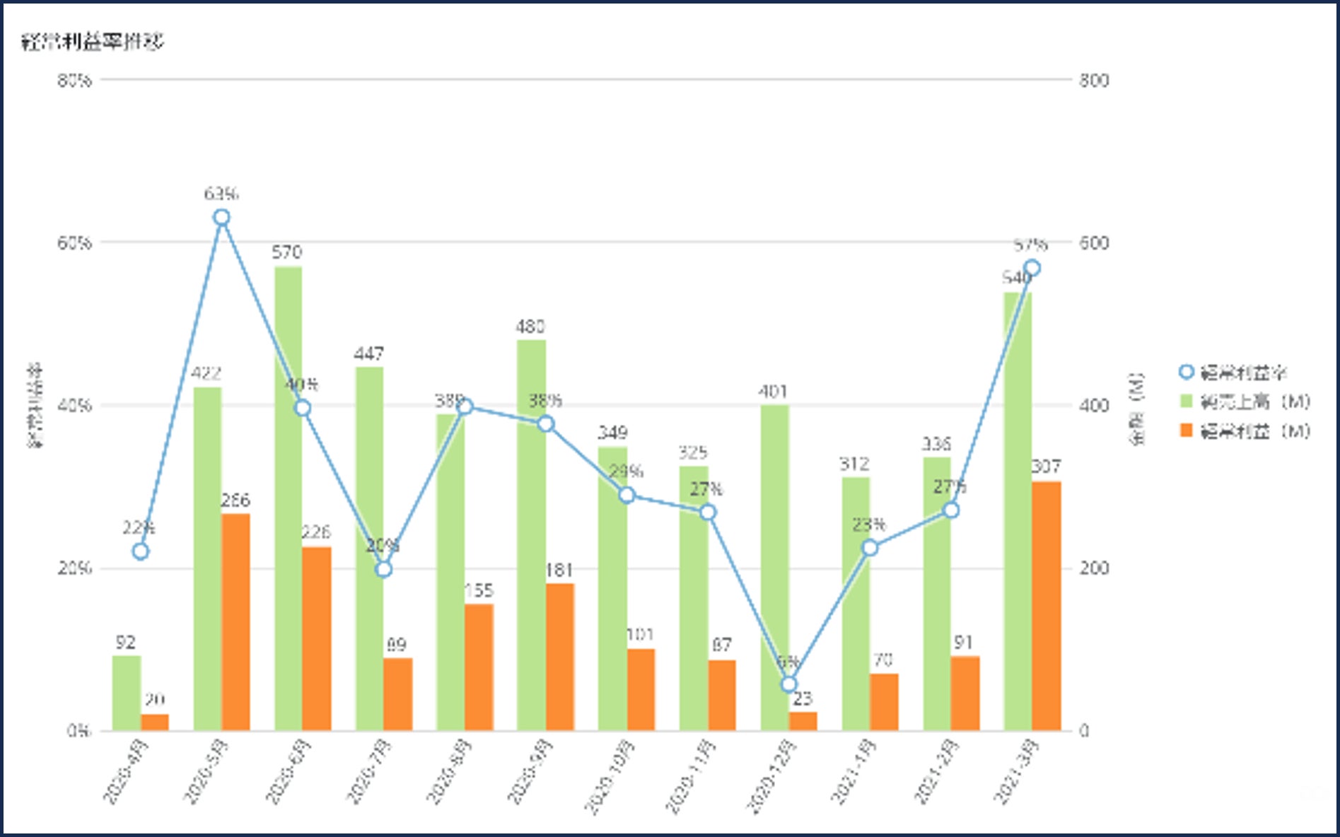 経常利益推移(月、四半期、年度)