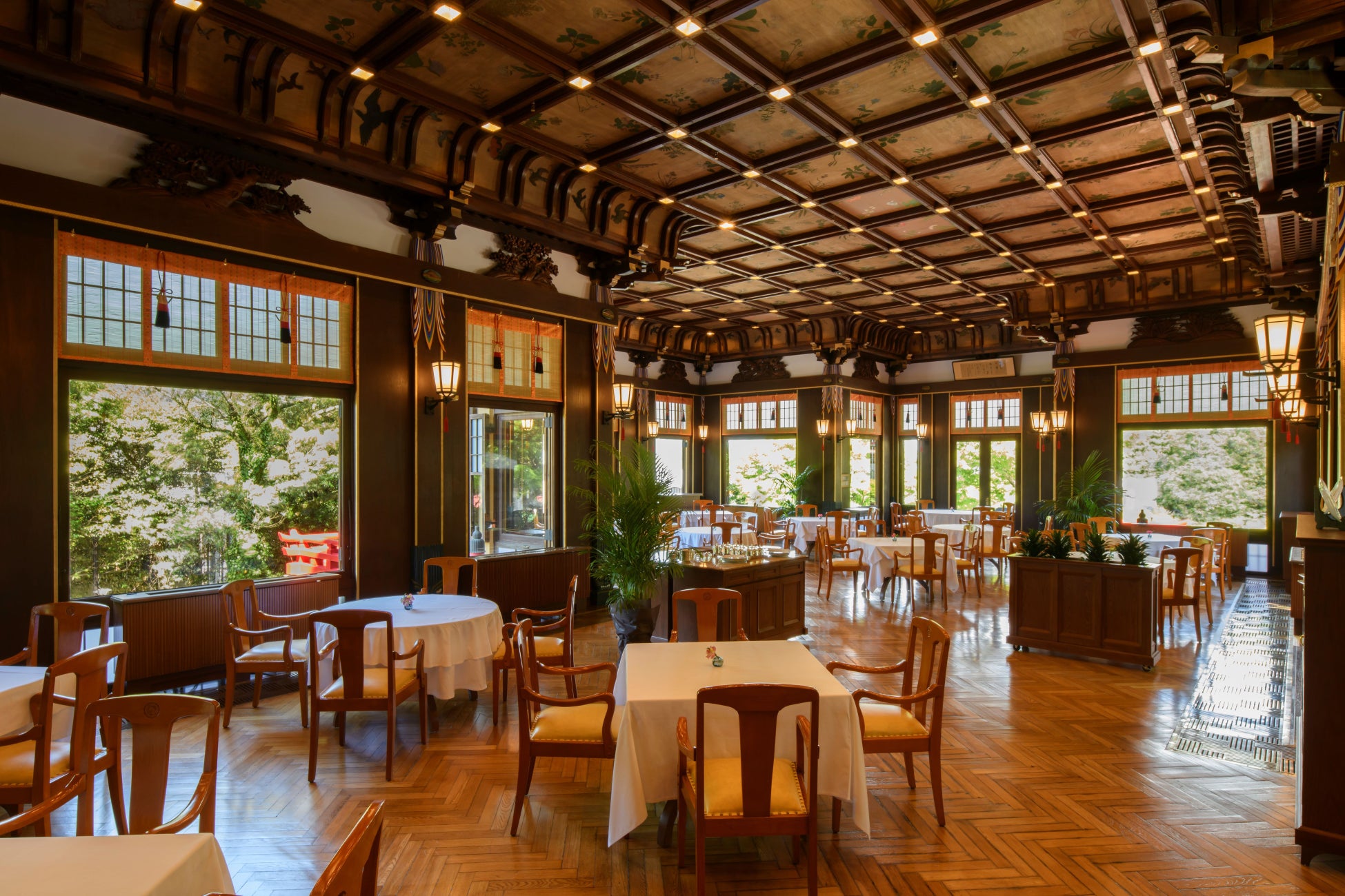 ・レストラン・カスケードは、旧カスケードの歴史的内装意匠の新築RC構造への移設・復元による保存継承。