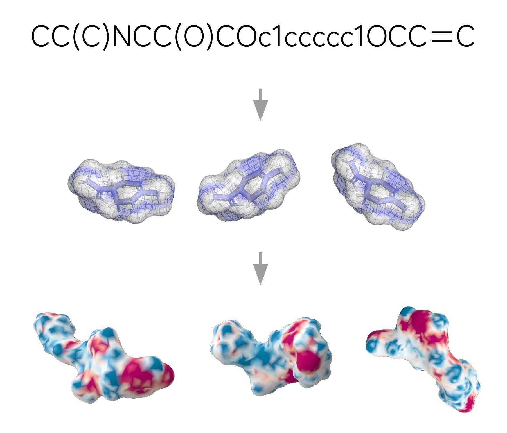大規模事前学習モデルの特徴である、化合物表現のイメージ図