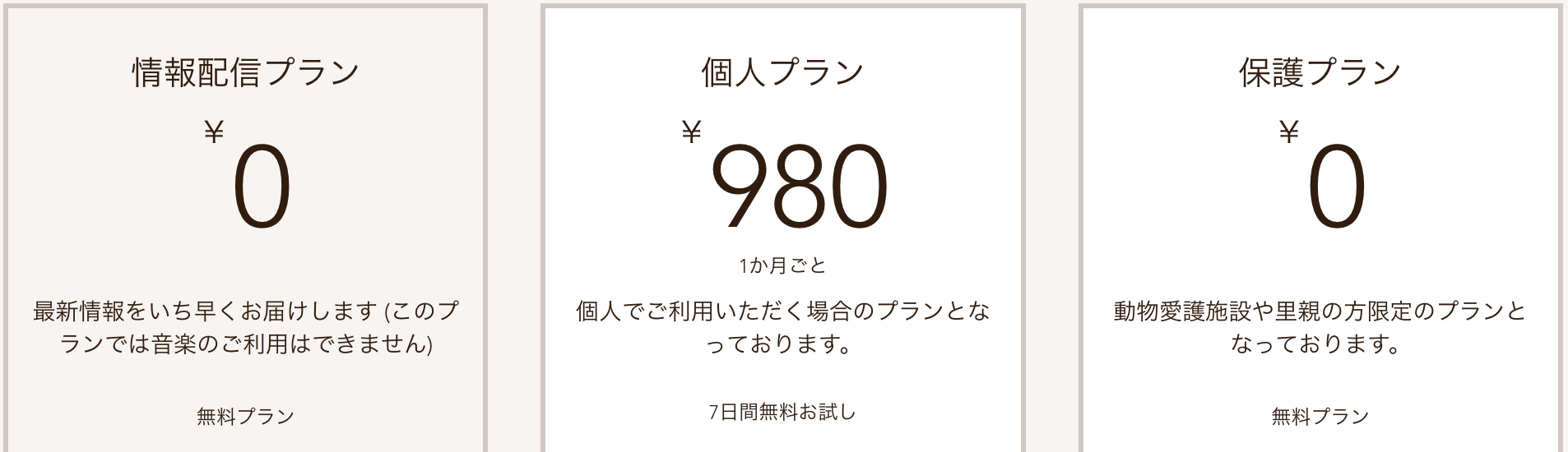 ※保護施設や⾥親の方向けの完全無料プランをご用意しております。