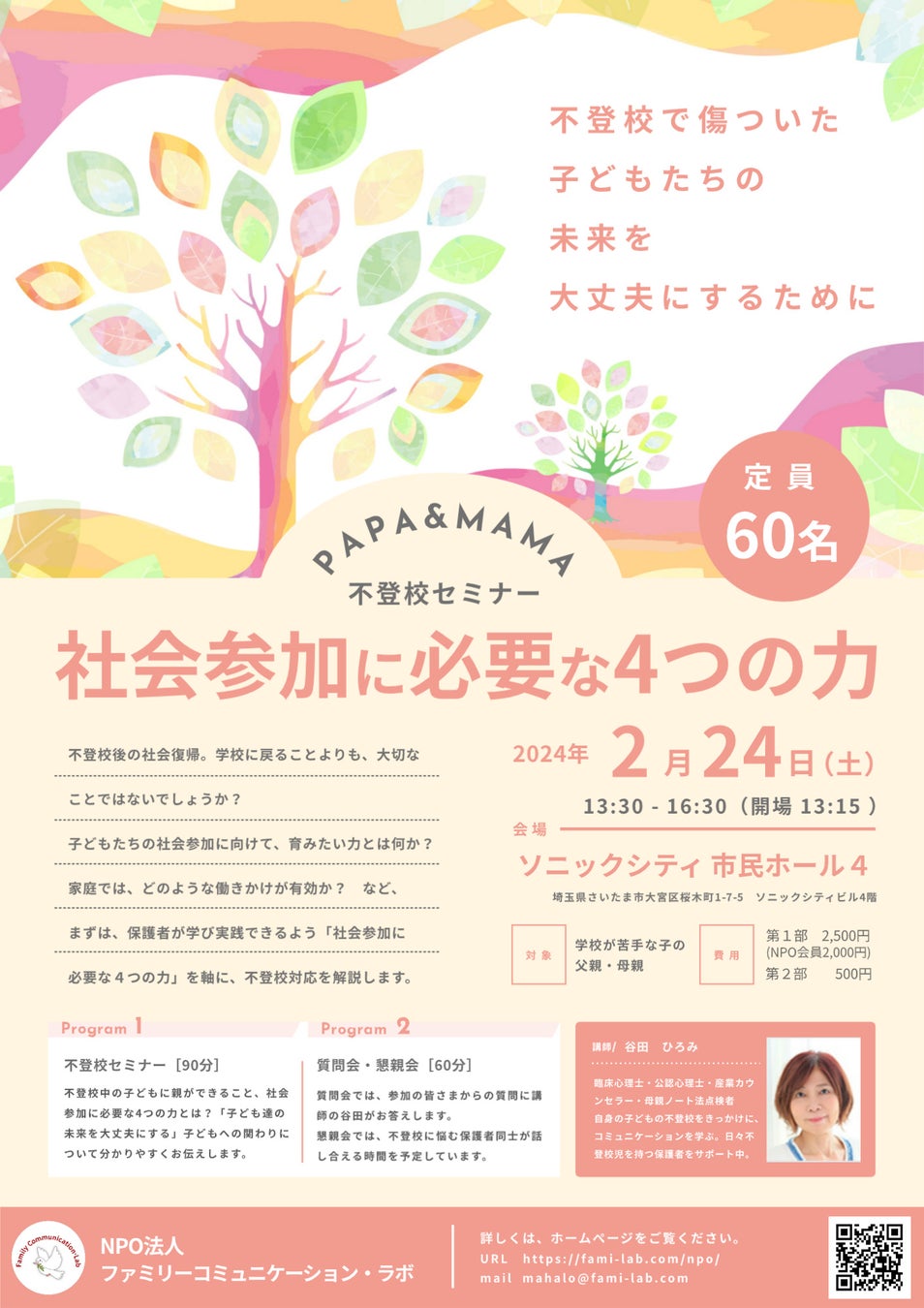 さいたま不登校セミナー 不登校からの社会参加に向けて「社会参加に必要な4つの力」(2024年2月24日(土)開催)