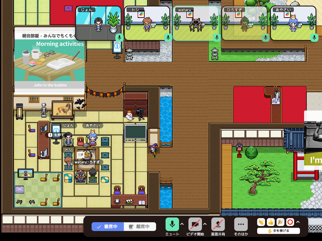 MetaLifeというバーチャルオフィスツールを使用しています。