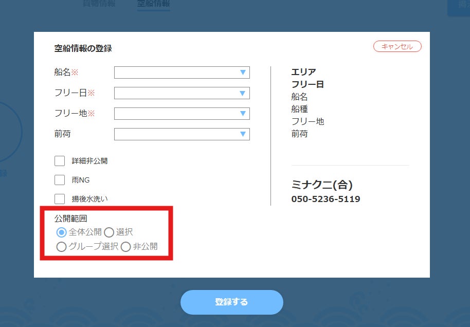 今回追加された機能は、情報公開範囲を柔軟に設定できるものです。この機能により、会員企業様は自社が登録した情報(船舶情報・貨物情報)を公開する相手を以下の方法で選択できるようになりました。これにより、情報公開範囲をより細かく調整し、適切な相手への情報共有が可能となります。