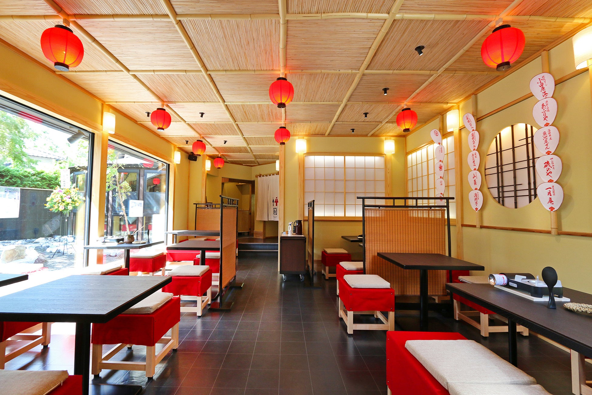 和の設えが施された落ち着いた雰囲気の店内には、大きな窓から陽光が差し込み、明るく開放的な空間を演出しています。