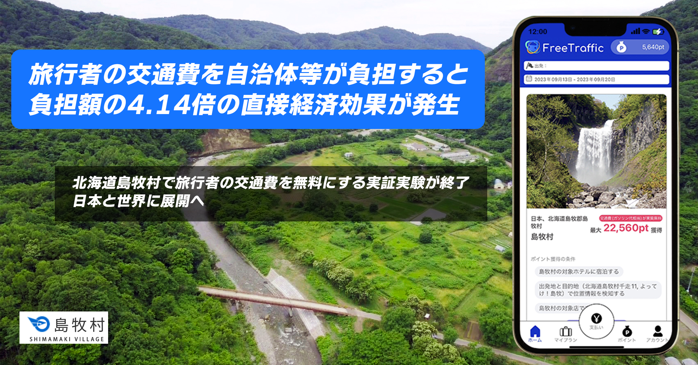 スタートアップ企業のFourwin株式会社は、旅行者の交通費を自治体等が負担するアプリFreeTrafficの実証実験を北海道島牧村で実施しました。(期間は2023年9月22日から2024年3月31日)