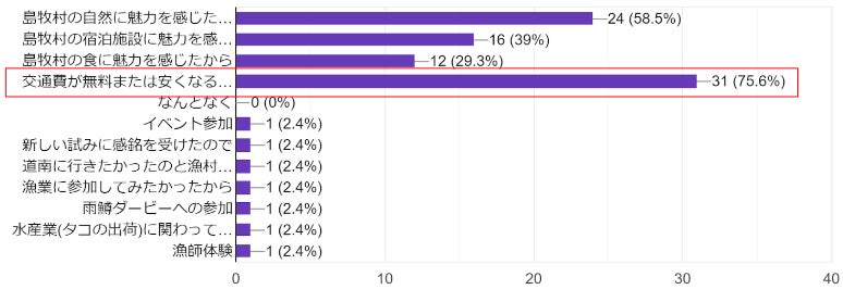 交通費が無料または安くなるから島牧村に旅行をしたという旅行者が75.6%いました。