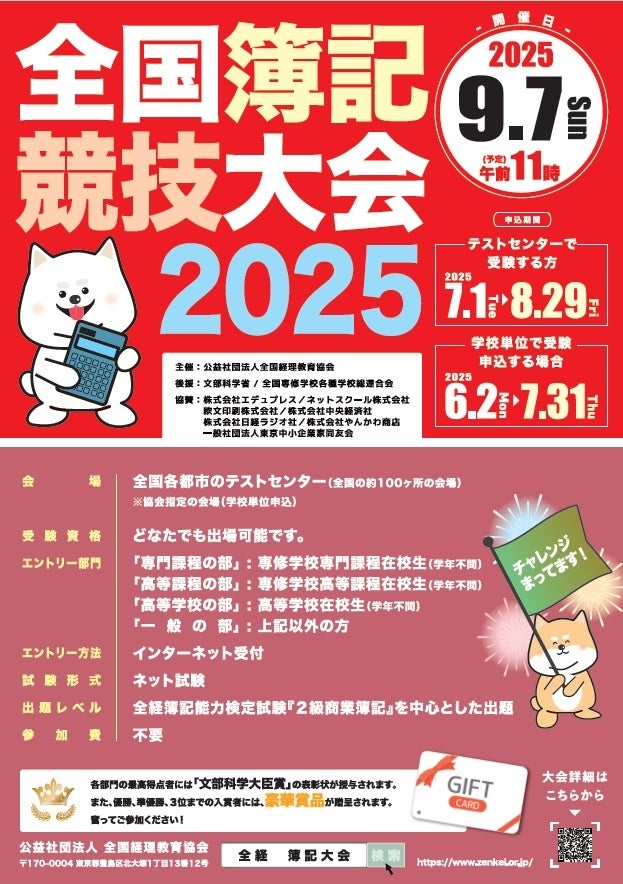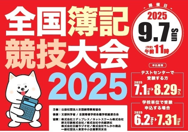 「簿記能力検定試験」などを実施する、公益社団法人 全国経理教育協会(東京都豊島区、理事長:鈴木 一樹)は、簿記の普及・向上と職業教育の振興発展を図るため、「全国簿記競技大会」を開催いたします。