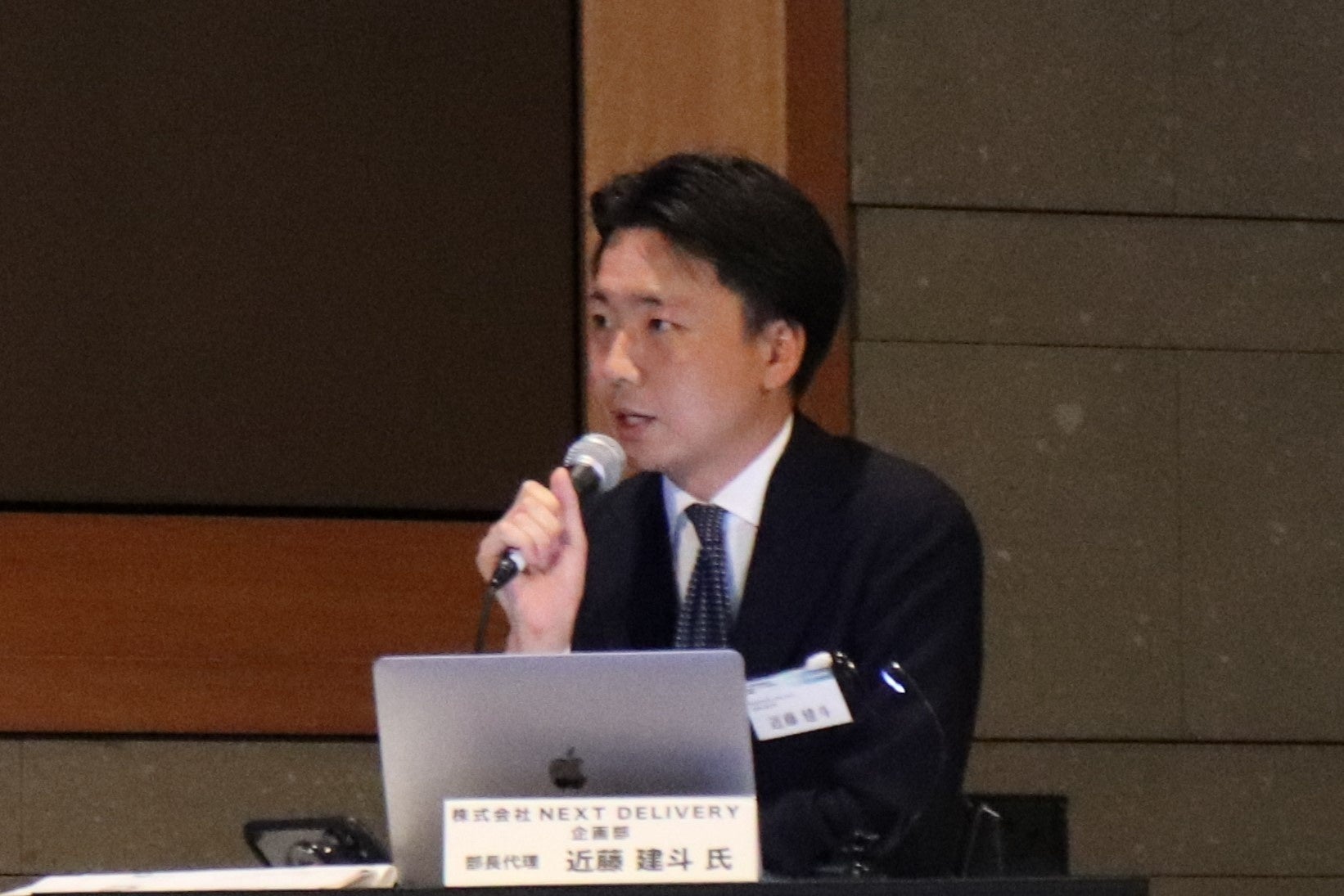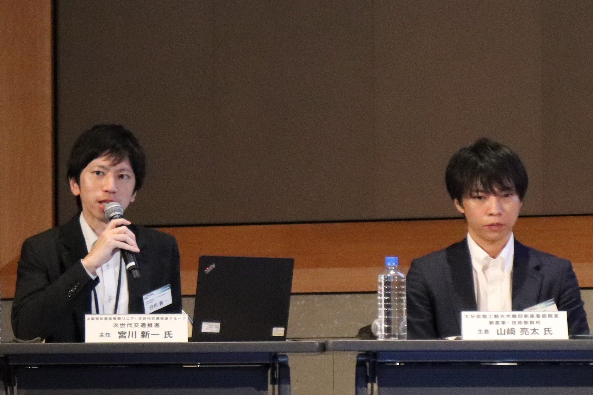大分県商工観光労働部新産業振興室 新産業・技術振興班 主査 山﨑亮太氏、山梨県知事政策局 リニア・次世代交通推進グループ 次世代交通 主任 宮川新一氏、株式会社NEXT DELIVERY 企画部 部長代理 近藤建斗氏(モデレーター、本協議会運営委員)によるパネルディスカッション