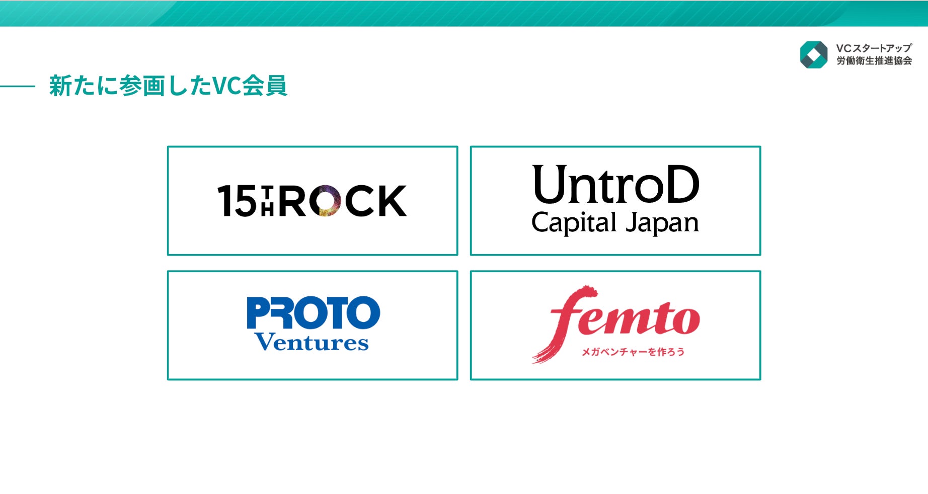 一般社団法人VCスタートアップ労働衛生推進協会(以下、当団体)は、当団体及び健康保険組合に賛同し協賛するベンチャーキャピタル(以下VC)として新たに4社のVCが参画し、合計46社のVCから支援を受けていることを発表します。
