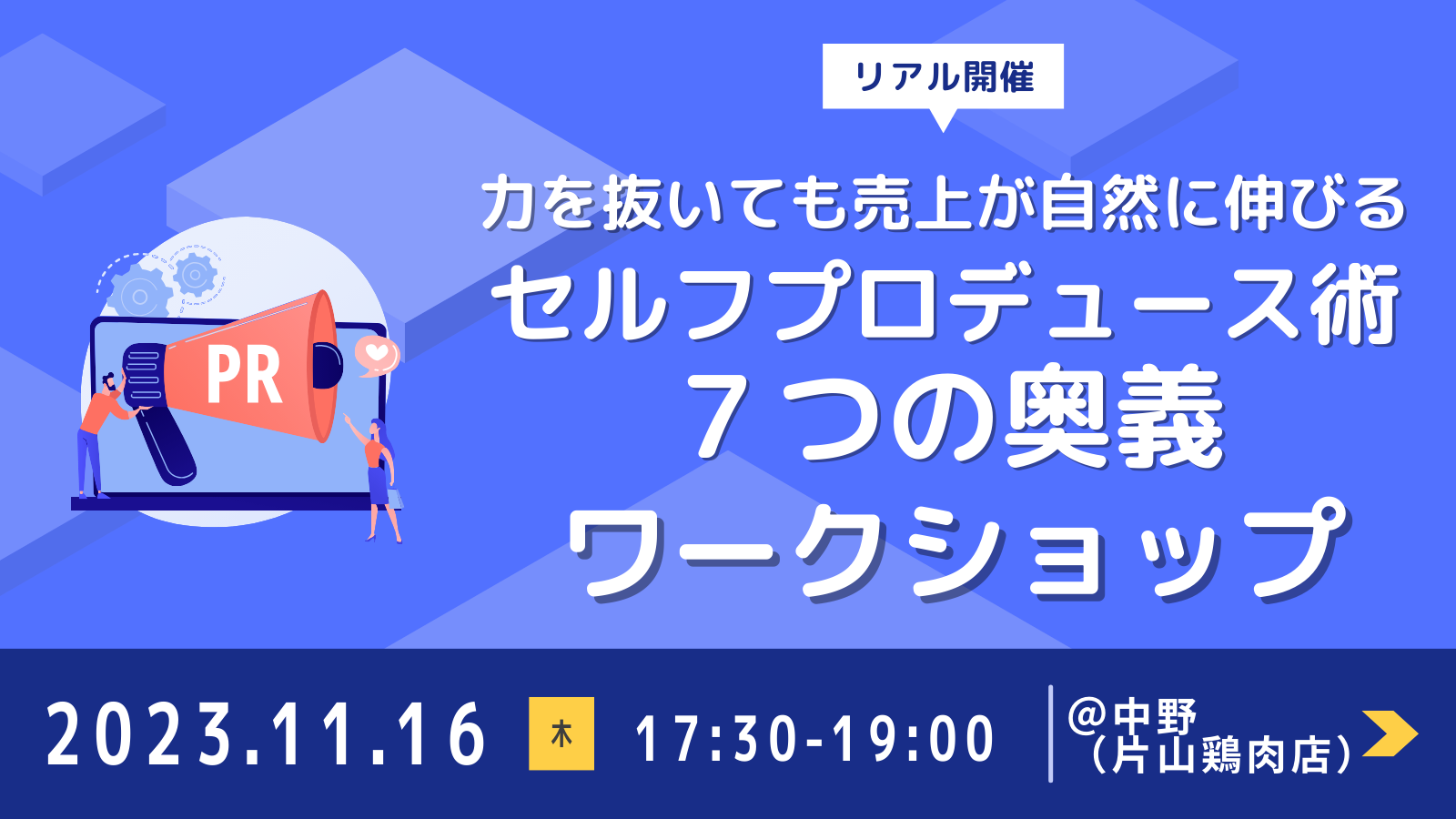 【新感覚ワークショップ開催】力を抜いても売上が自然に伸びる『セルフプロデュース術7つの奥義』東京中野で11月16日開催決定