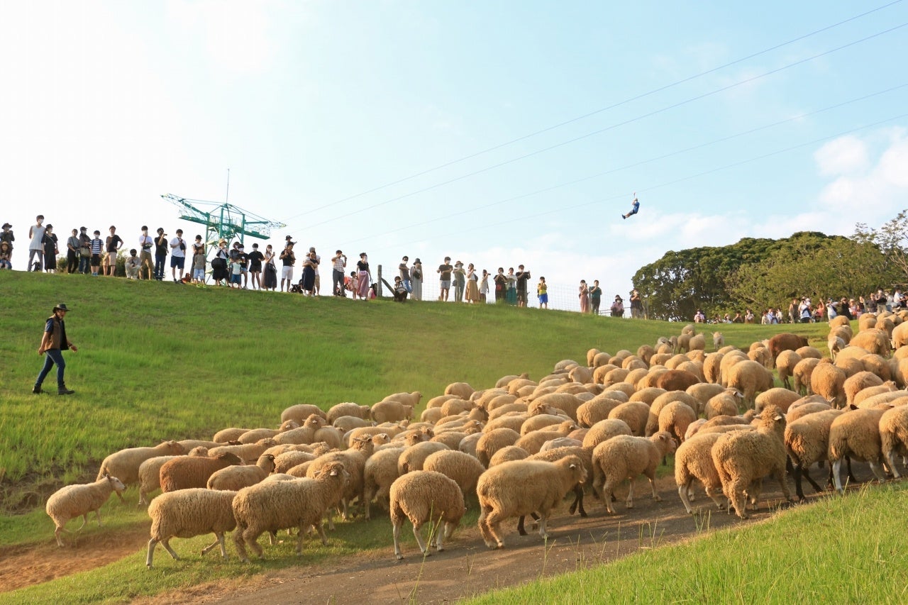 7・8月はお休みをしている、マザー牧場の人気イベント「ひつじの大行進」をサマーナイトファーム開催日限定で夕方の涼しい時間に特別開催します。