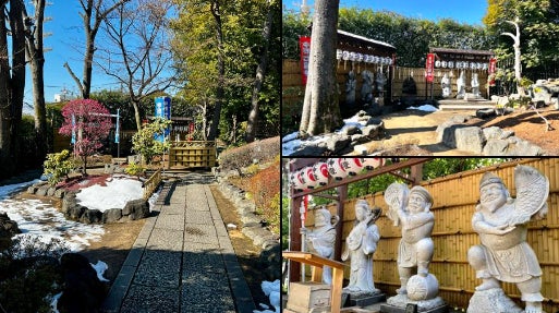 春にはツツジが咲く緑ある小路を進むと七福神の像があります。