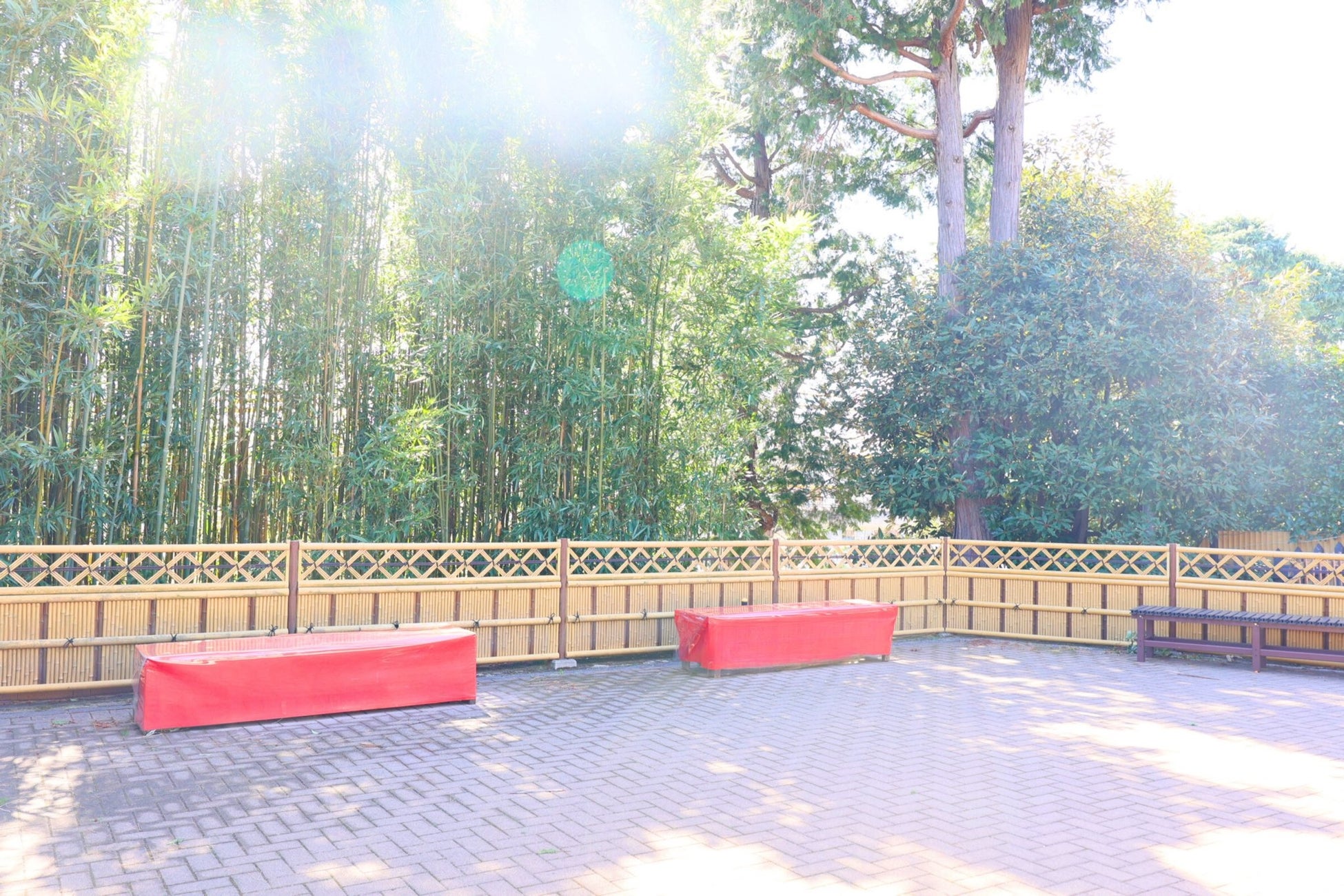 鳥居をくぐって右手には竹林を背景に和の趣のある休憩スペースがあり、こちらでも撮影いただけます!