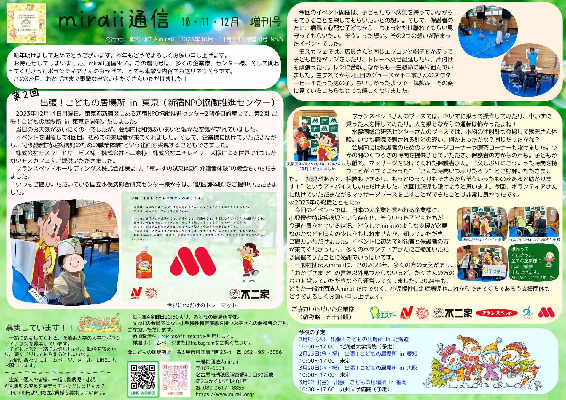 前回号miraii通信 No.5に引き続き、10月・11月・12月増刊号となってしまいましたが、miraii通信No.6が発行しました!