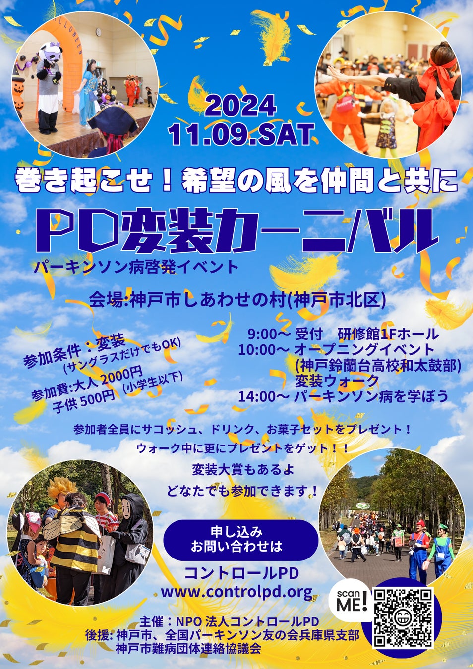 2024年11月9日の土曜日、NPO法人コントロールPDが主催する第2回「PD変装カーニバル」開催が決定しました。パーキンソン病であることを知られたくないと思っている人も、病気の事を知って欲しいと思っている人も、そして一般の人も、みんなで楽しく変装してしまえば、誰が誰だか分からない。