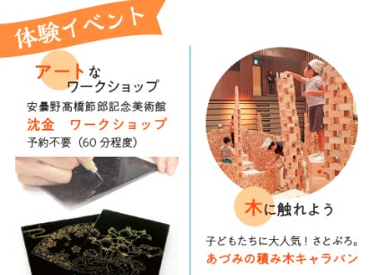 移住地としても人気の高い安曇野。安曇野が誇るりんごやそばなどの特産品のほか、山岳グッズ、オリジナル記念切手の販売、美術館ワークショップなどの体験会を行います。また、あづみの移住大使 篠原信一さんのトークショー、移住者たちの安曇野暮らしのインタビューをまとめたパネル展示、移住相談や観光案内ブースなど、東京にいながら安曇野を体感できる特別な1日を提供します。