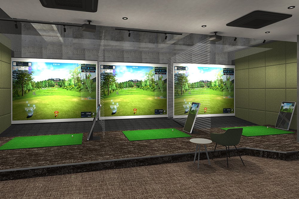 ゴルフエリアでは、昨年日本に上陸したばかりの世界最高峰の精度を誇るKGOLFのゴルフシミュレーターを配し、初心者から上級者までがご納得いただける練習環境を完備いたしました。