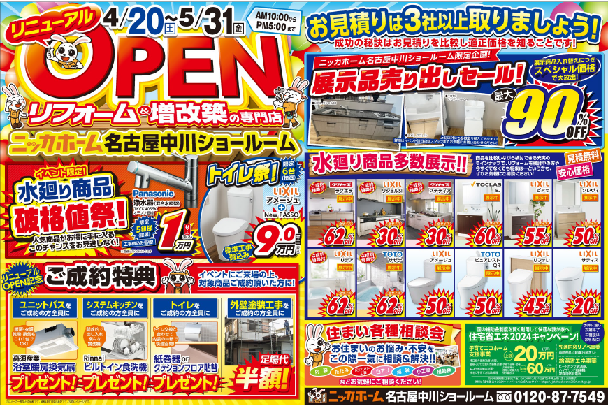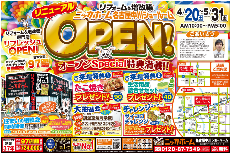 ニッカホーム名古屋中川リニューアルオープン記念イベント&キャンペーンを4月20日(土)~5月31日(金)にて開催!