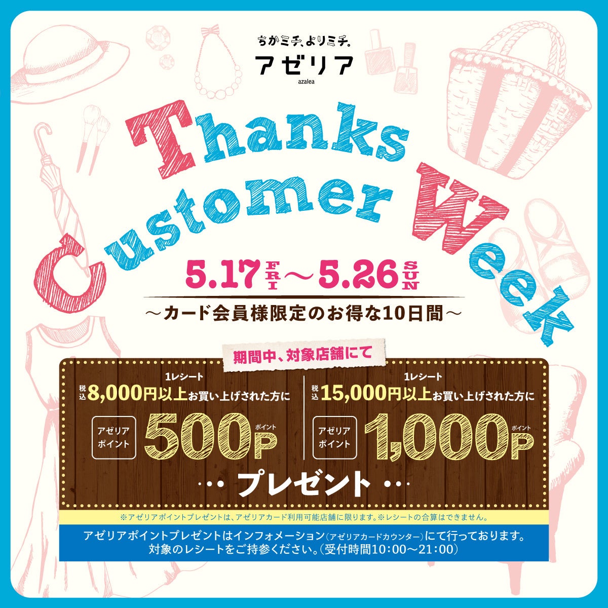JR川崎駅と京急線 京急川崎駅直結、日本最大級の地下商業施設、川崎アゼリア(運営・管理 川崎アゼリア株式会社(神奈川県川崎市川崎区/代表取締役社長 向坂光浩))では、2024年5月17日(金)~5月26日(日)までの10日間、「サンクスカスタマーウィーク」を開催いたします。