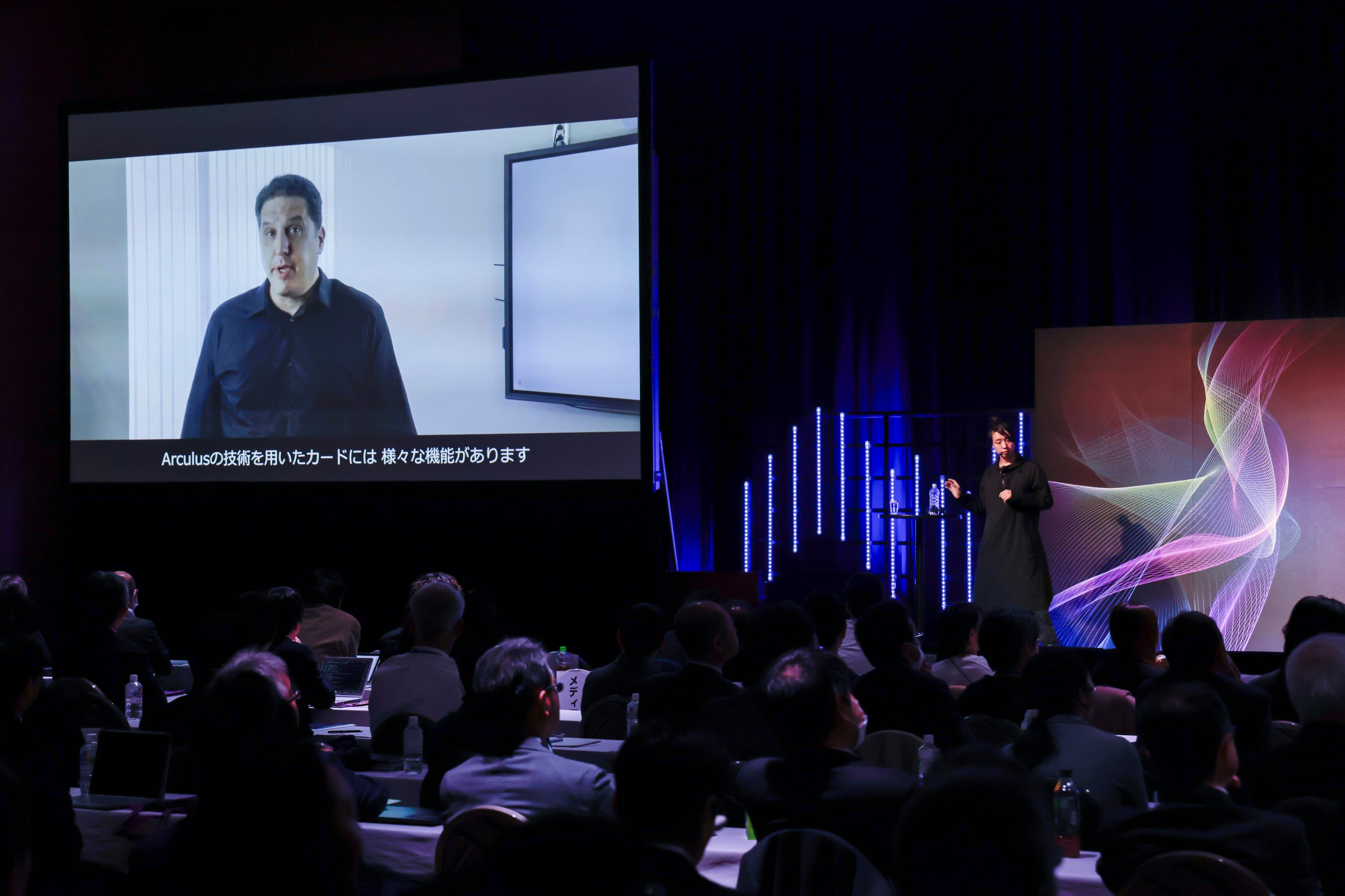 また、「Mirrored Body®」がIDとして機能する世界を便利かつ安全に実現するための、カード型ハードウェアウォレットについても紹介。落合氏が「AI時代にこそweb3の活用が大事になる」というメッセージを語った後、コールドウォレットとして活用できるICカードを提供するArculusからのビデオメッセージも上映されました。