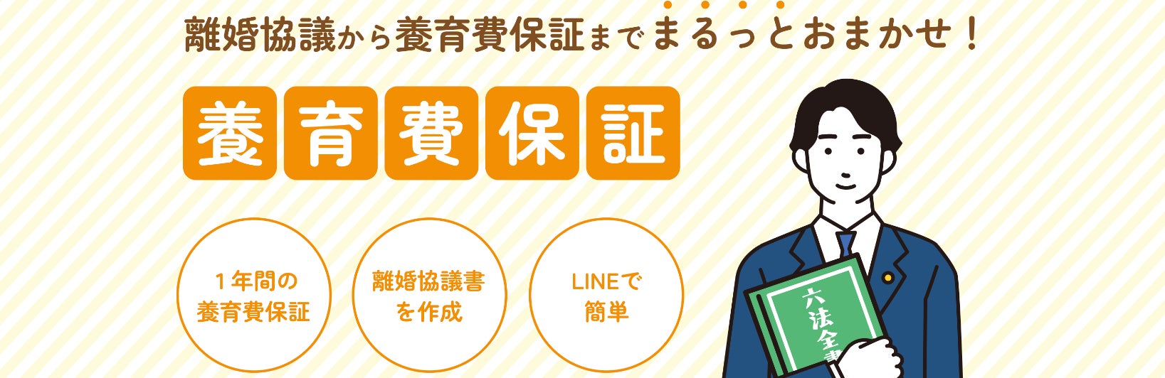 また、離婚後も10年、20年と継続する養育費の支払いを確保する「座組み」として、養育費の自動回収代行、12ヶ月支払保証、弁護士費用保証という3つの機能をパッケージ化して提供しています。