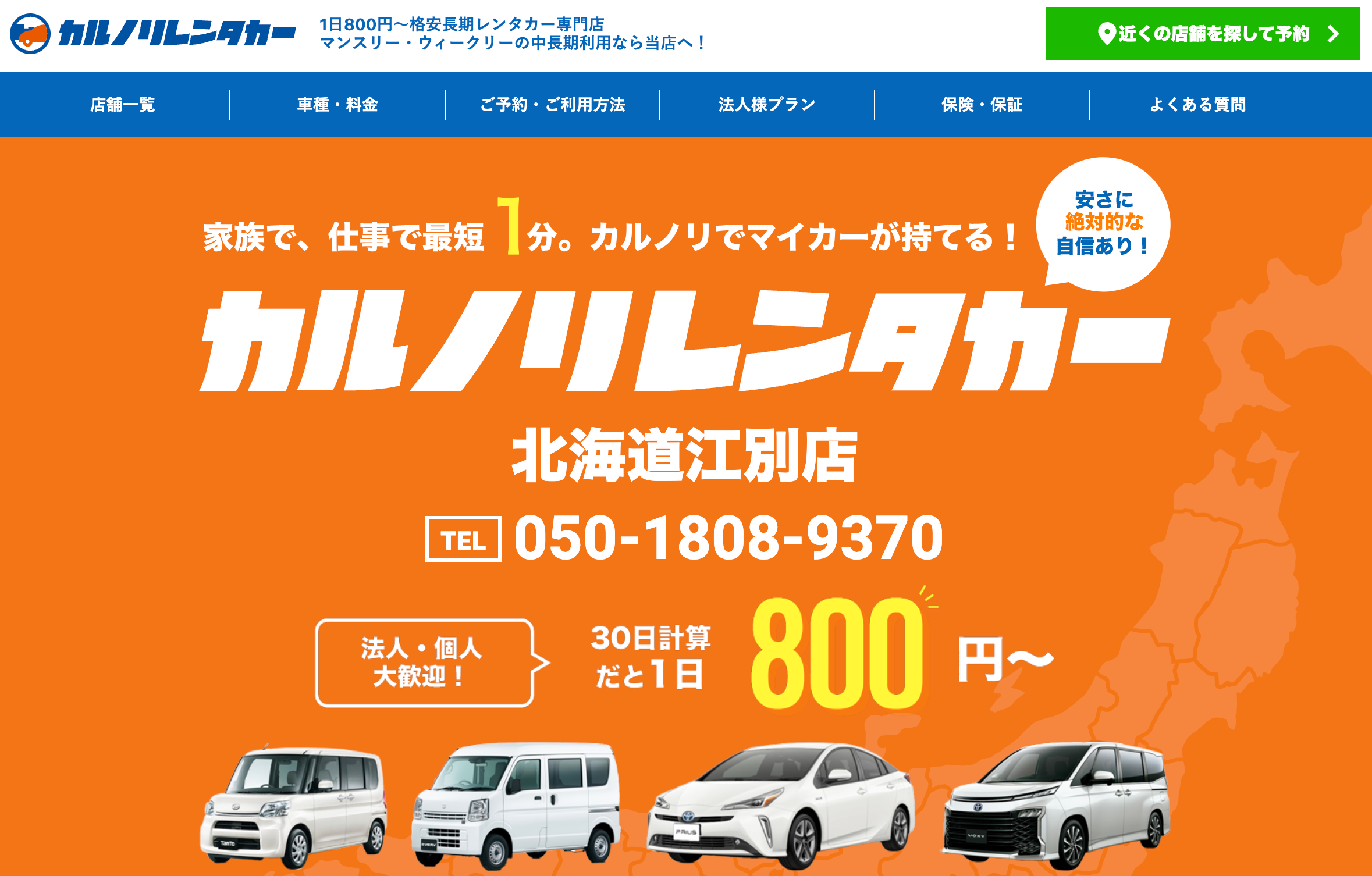 江別市近辺でレンタカーをお探しの方は是非カルノリレンタカー北海道江別店をご利用ください。
