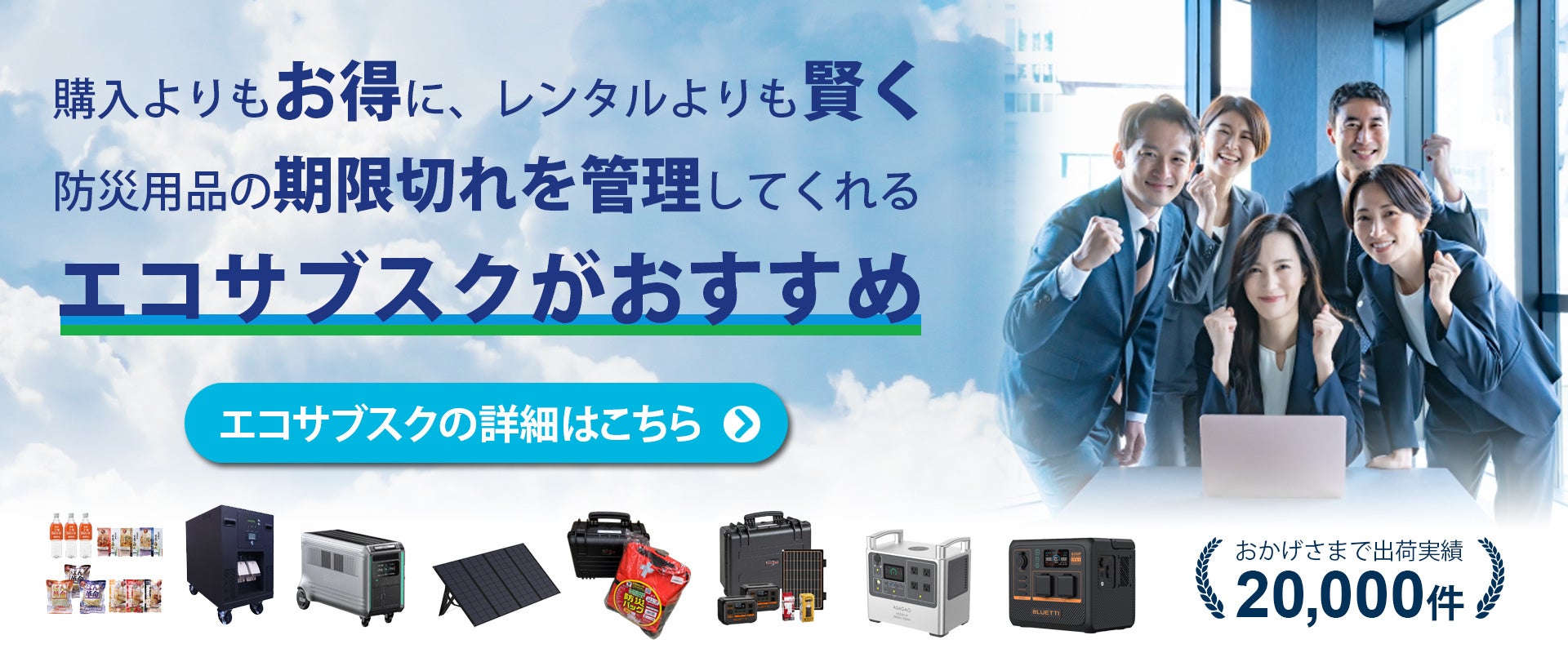 エコサブスクは、地震、台風、火災などのさまざまな災害に対応するための厳選した商品を取り揃え、利用者の皆さまが災害時に必要な防災アイテムを簡単に手に入れられる環境を整えております。