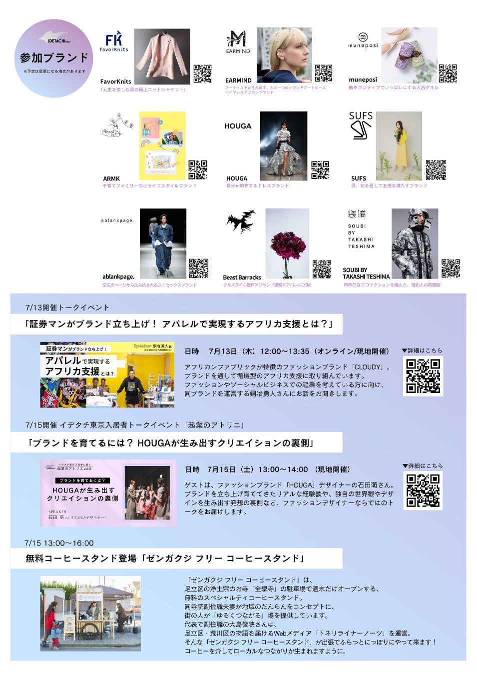 FavorKnits、EARMIND、muneposi、ARMK、HOUGA、SUFS、ablankpage.、Beast Barracks、SOUBI BY TAKASHI TESHIMA