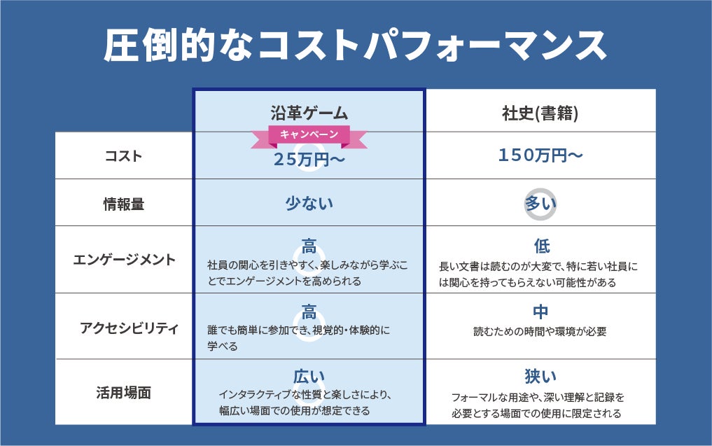 当サービスは社史を作成する場合と比べて、圧倒的なコストパフォーマンスを発揮します。