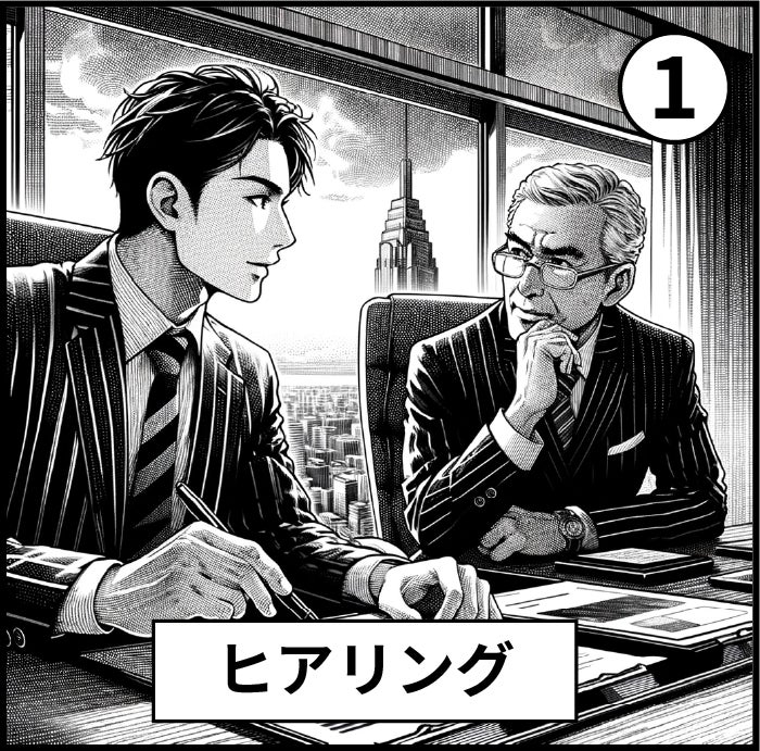 当社に所属するコンサルタントが、貴社の歴史や文化、目標などをヒアリングいたします。