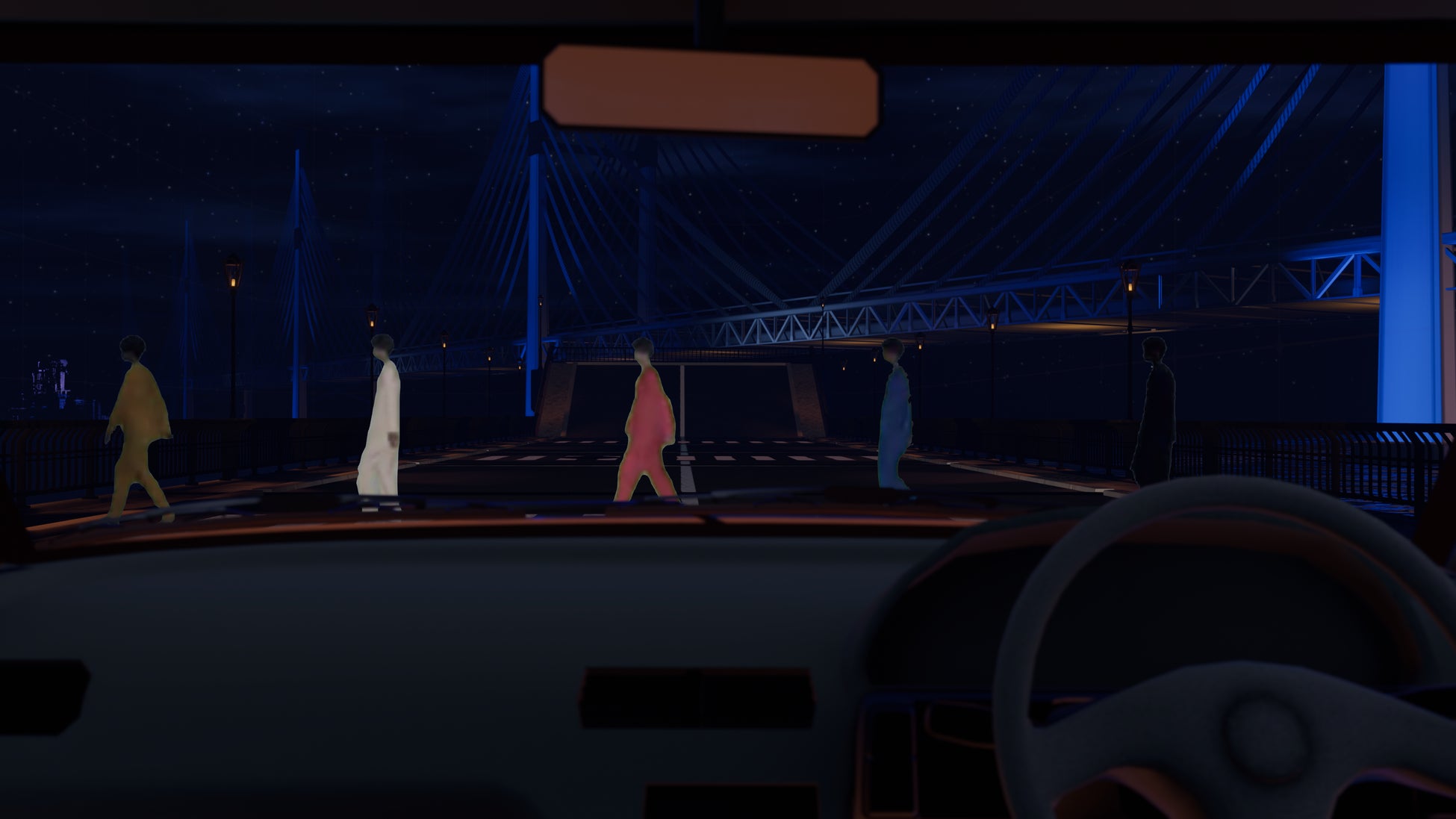 そして今回の研究では、文化学園大学 内山竜多准教授と協力し、歩行者が夜間に「横断歩道」と「横断歩道のない場所」を渡る場合、服装の色がドライバーからの「気づきやすさ」にどのような影響を与えるかを検証しました。実験の結果、元々見えやすい白色はどの条件でも見えやすさに変わりはありませんでしたが、その他の色では「横断歩道」を渡る歩行者の方がドライバーに気づきやすくなることが明らかになりました。