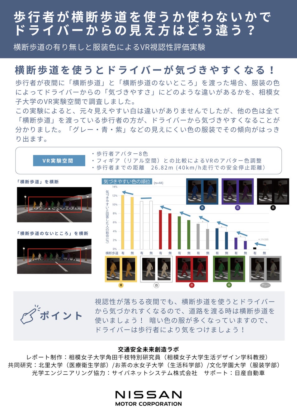 横断歩道上の服装色に関する視認性評価研究成果を発表