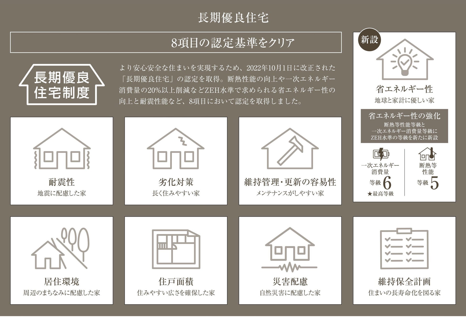 また、「ヴェレーナガーデン浜田山」では、長期優良住宅の認定を取得。断熱性能の向上や一次エネルギー消費量の20%以上削減などZEH水準で求められる省エネルギー性の向上と耐震性能など8項目において認定を取得しました。
