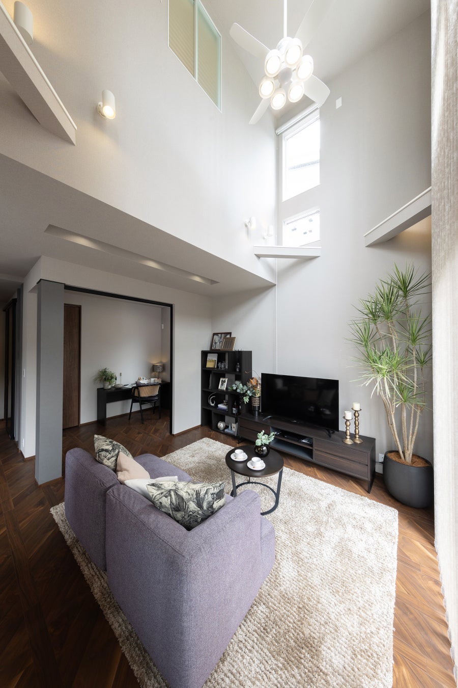 開放的な吹抜のリビングプランや全邸に小屋裏空間を利用した「ビッグウォークインストレージ」を採用