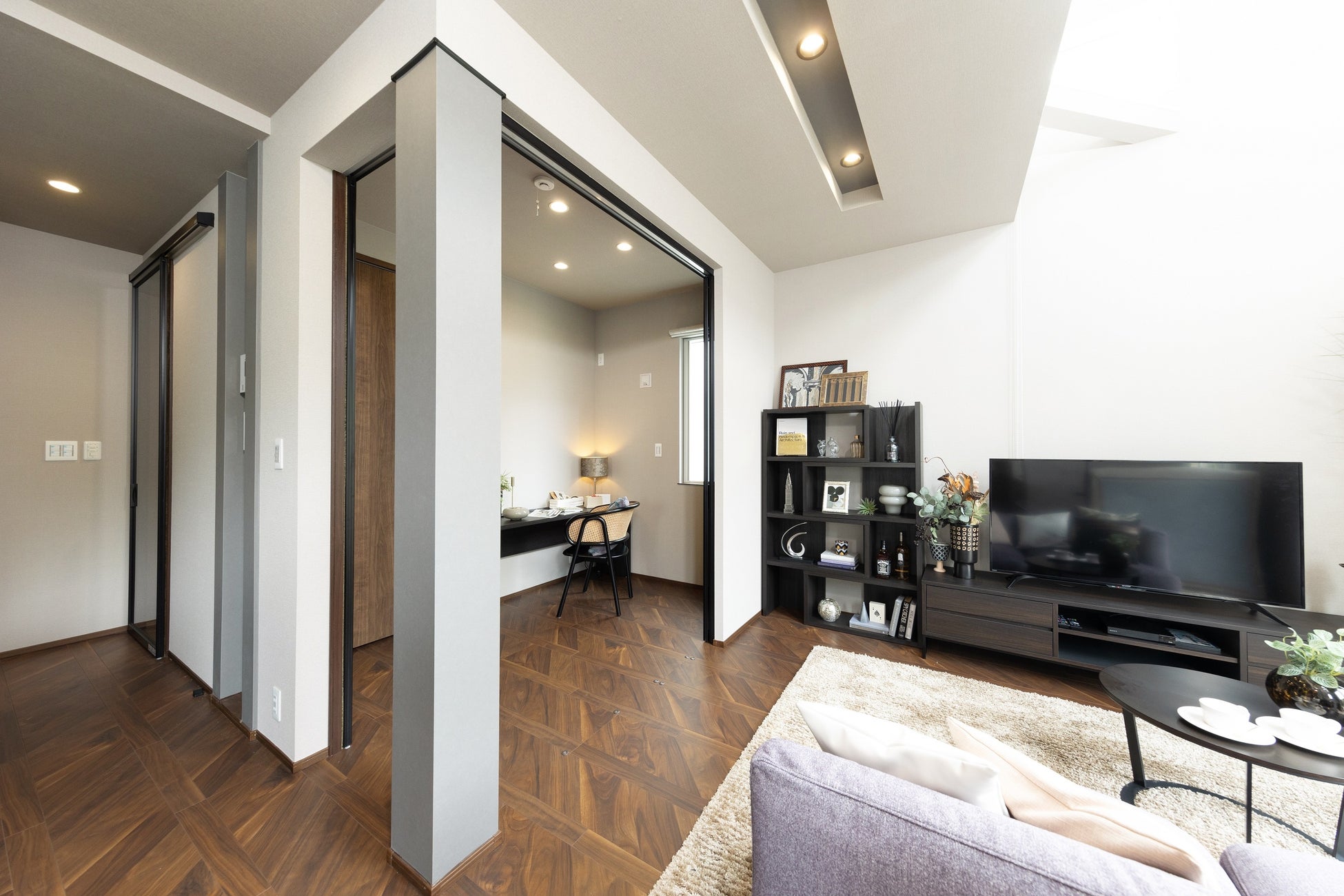 室内は、リビングに開放的な吹抜を設けたプランをはじめ、テラス&ガーデンのあるプラン、パントリーやウォークインクロゼットのあるプランなど、一邸ごとに異なる個性を求めたプランニングを採用。さらに小屋裏空間を有効活用したビッグウォークインストレージを全邸に設置。固定階段を採用することで収納スペースとしてはもちろん、暮らしに合わせて多目的に使うことができるプラスαの空間をご用意しました。