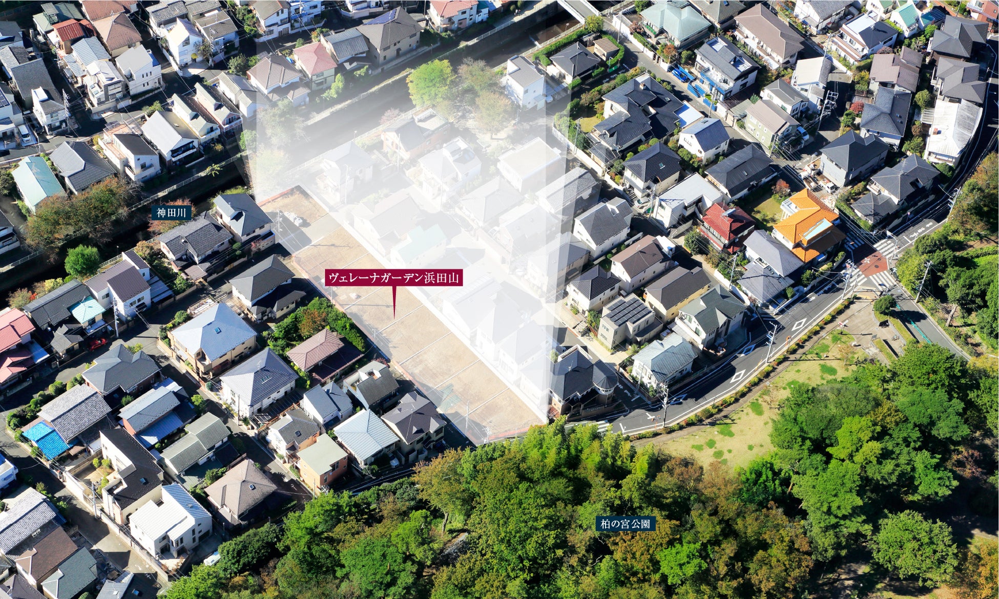 (1)「柏の宮公園」徒歩1分。第一種低層住居専用地域に誕生する全8区画の邸宅