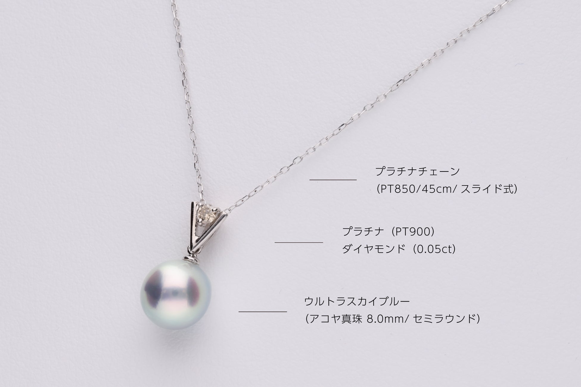 素材:アコヤ真珠(無調色/8.0mm以上)・プラチナ(PT900)・ダイヤモンド・サファイア
