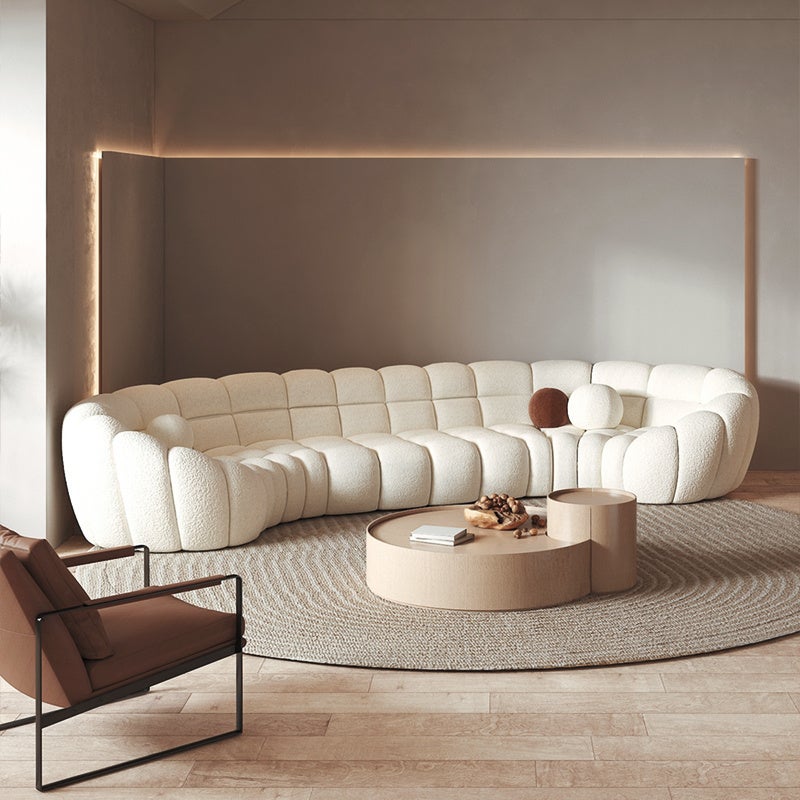 ソファの座面には高密度反発ウレタンを使用し、体を全面的にリラックスさせます。手すりのデザインは流線的で、蛇行角度が心地よい支持を提供します。