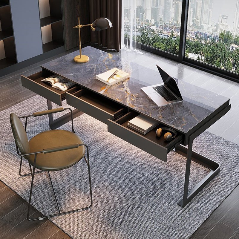 シンプルで贅沢なエレガンスが特徴のワークデスクです。上品なデザインと高級シントレードストーン素材が、モダンな作業空間を演出します。カーキ色と黒の組み合わせは、洗練された雰囲気を醸し出します。