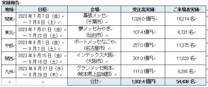 ユアサ商事株式会社(東京都千代田区、代表取締役社長:田村 博之)は、販売先様の会である「やまずみ会」様、仕入先様の会である「炭協会」様とともに、2023年7月から9月までの期間に、関東、東北、中部、関西、九州の5か所において展示会「つなぐグランドフェア2023」を実施いたしました。ご来場いただきました54,436名の皆さま、並びにご支援・ご協力をいただきました関係各位の皆さまに心より御礼申し上げます。