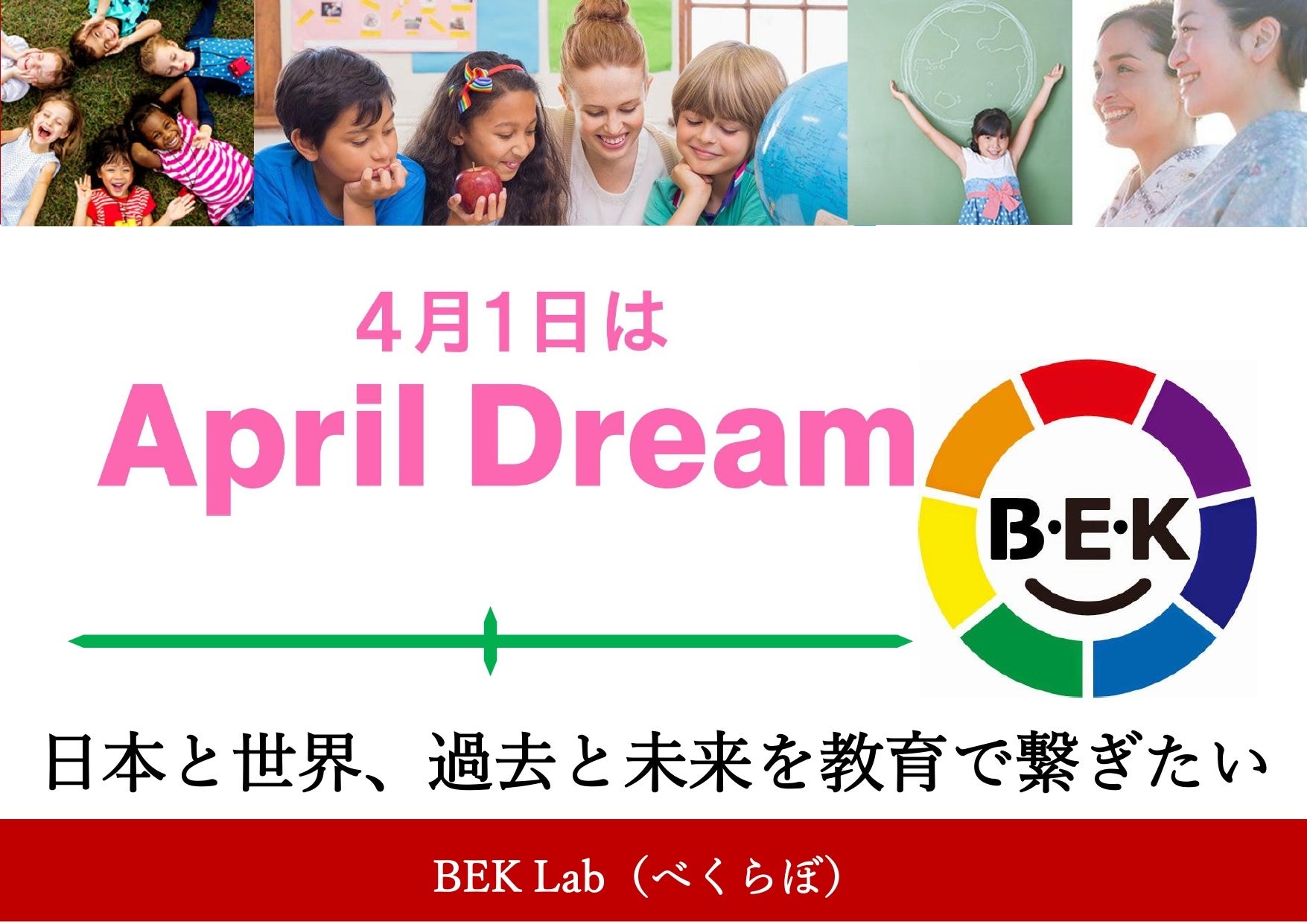 当社は、 4月1日を夢を発信する日にしようとする April Dreamに賛同しています。このプレスリリースは「 BEK Lab(べくらぼ) 」の夢です。