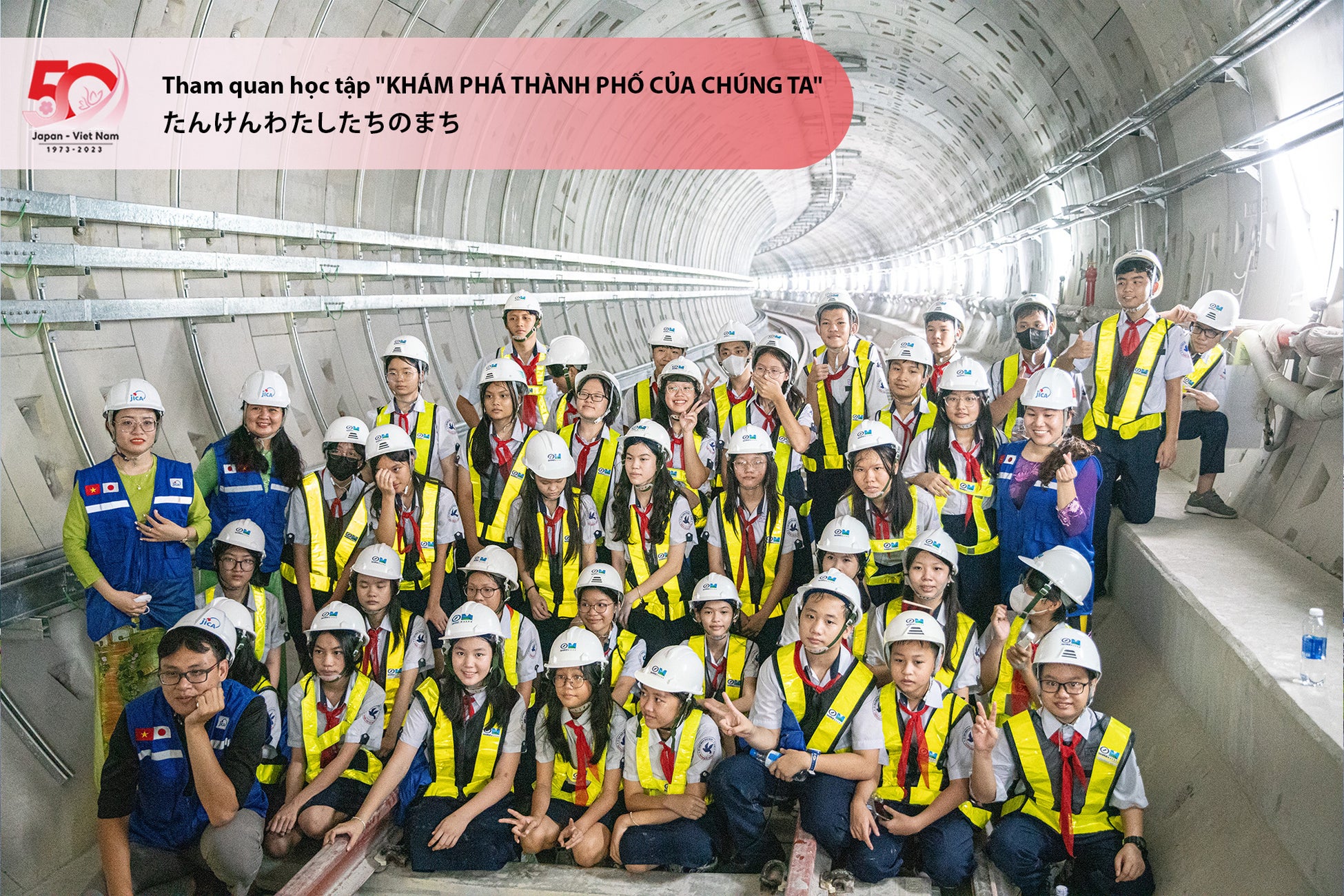 現在ホーチミン市では地下鉄が建設中です。以下の写真のように先日はホーチミンメトロ1号線オペラハウス駅工事現場に現地の中学生を招待し見学していただきました。この地下鉄計画にも様々な日本企業が関わっており、今後のベトナムにおける経済発展だけでなく、日越関係の向上に大きく寄与すると考えております。