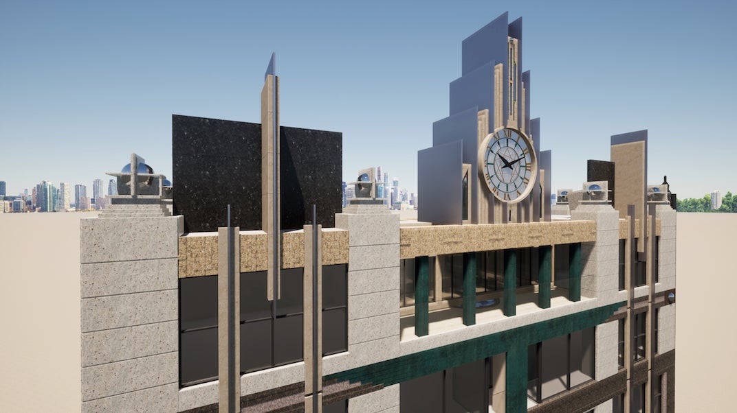 歴史の時を刻む時計塔やアール・デコ調の洗練されたデザイン。(イメージパース)