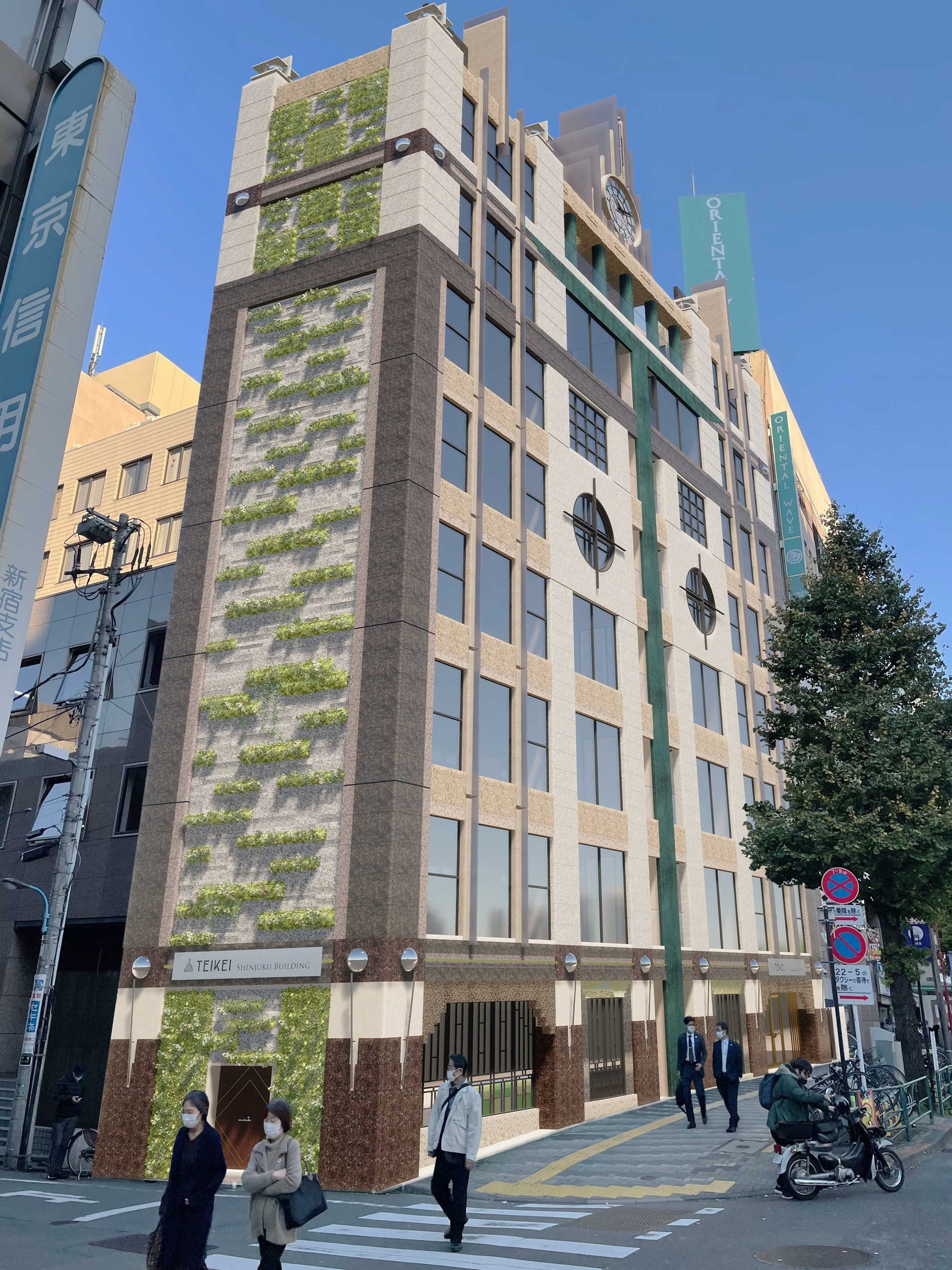 警備会社のテイケイ株式会社(本社:東京都新宿区、代表:影山 嘉昭)は、新宿靖国通りに「テイケイ新宿ビルヂング」を建設。令和6年3月に竣工します。全館のデザインはアール・デコを基調とし、環境に配慮した壁面緑化システムを取り入れ、都市部の気温上昇を軽減し、CO2の削減・大気汚染の浄化に貢献いたします。