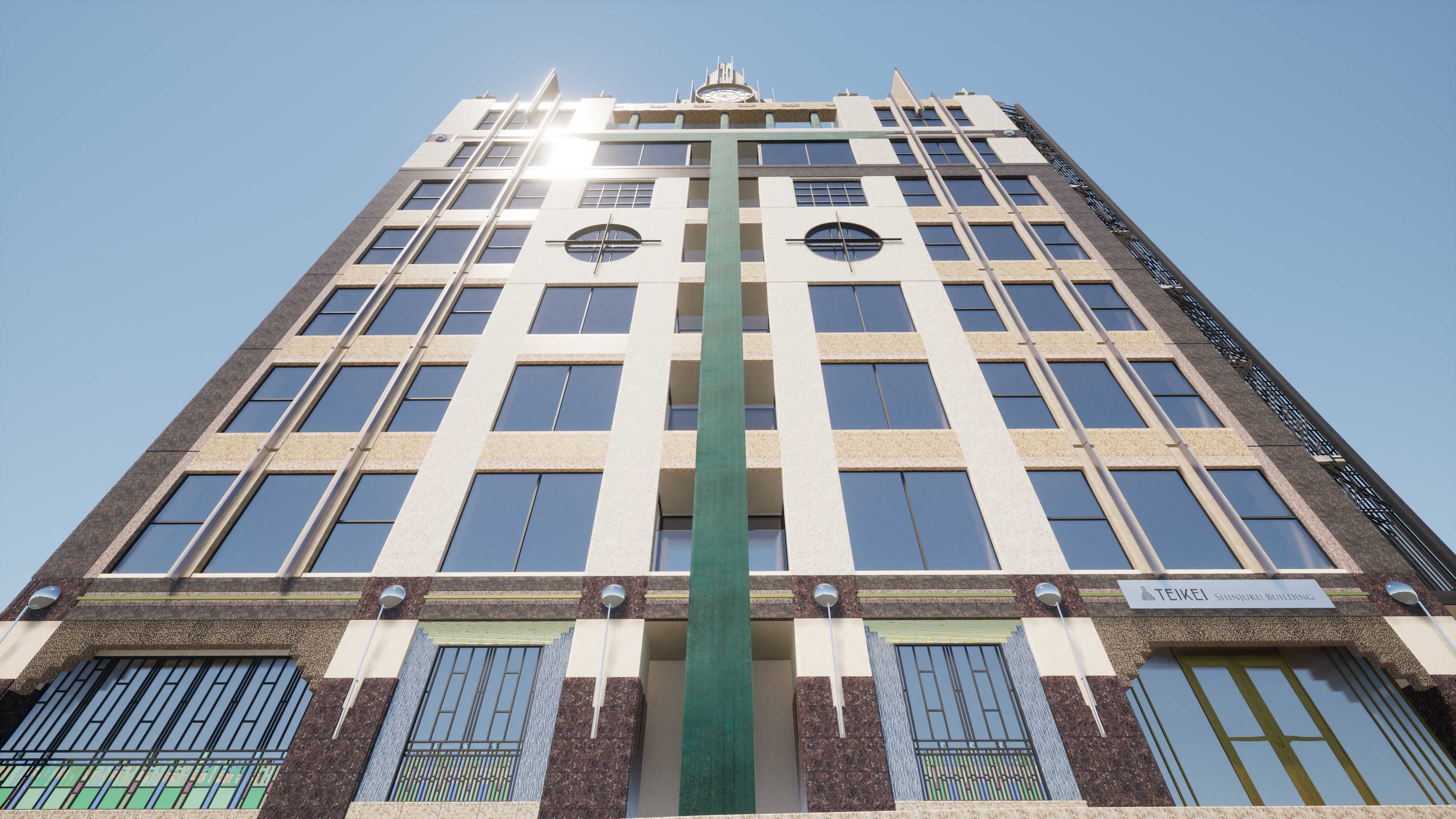 テイケイ新宿ビルヂングは、アール・デコを基調としたデザインコンセプトでアートとセキュリティを兼ね備え、新たな歴史の時を刻む時計塔をシンボルとして新宿の新たなランドマークに相応しい風格を備えます。