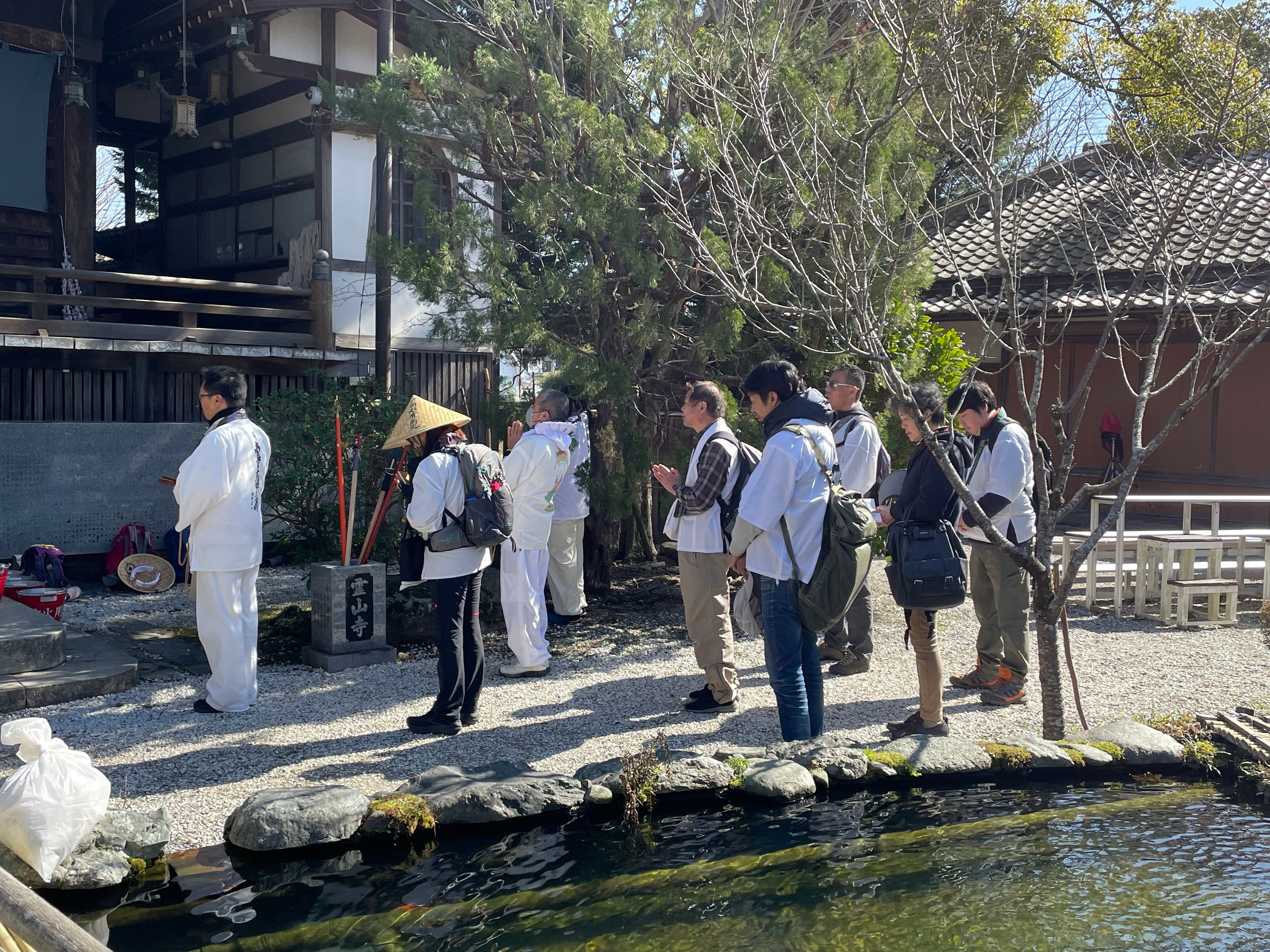 道中では、公認先達がお遍路とゆかりの深いスポットの歴史を案内しながら、約4時間7kmを歩きました。