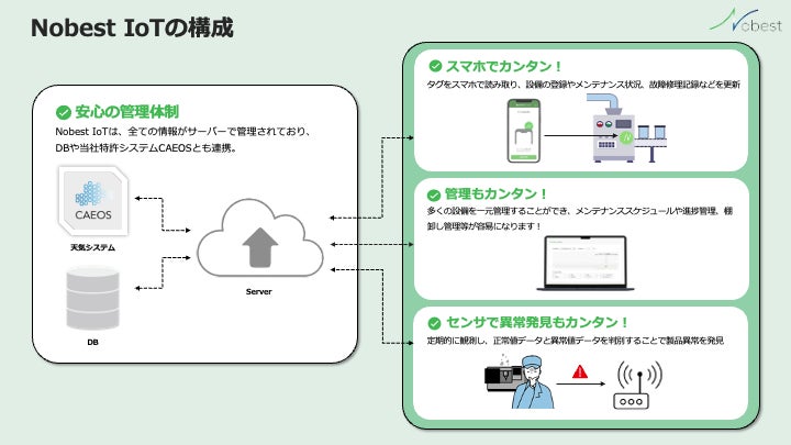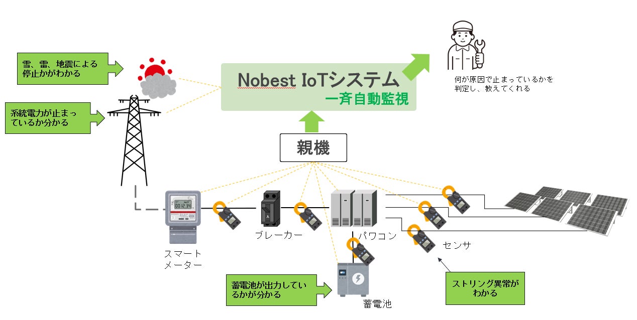 これらの解題に対して、NobestとサンエーはBAKの活動の中で、Nobestが開発したNFCタグ(Nobest-Tag、2024年7月発売)を太陽光設備に設置し、設備情報を管理するすることで、リユース市場やリサイクル市場で活用していくことができ、地球温暖化の解決に向けた実証実験を開始しており、この度、原因不明の異常や故障の解決に向けてNobestが開発した電流センサー(Nobest-Clamp、発売時期未定)をFujisawaSST施設内の太陽光設備の主要箇所に設置し、AIを搭載した自動監視システムで常時監視することで、太陽光設備が故障した際に、故障箇所を正確に判断し、ダウンタイム(設備が稼働できない状態)を劇的に軽減する実証実験が開始することとなった。