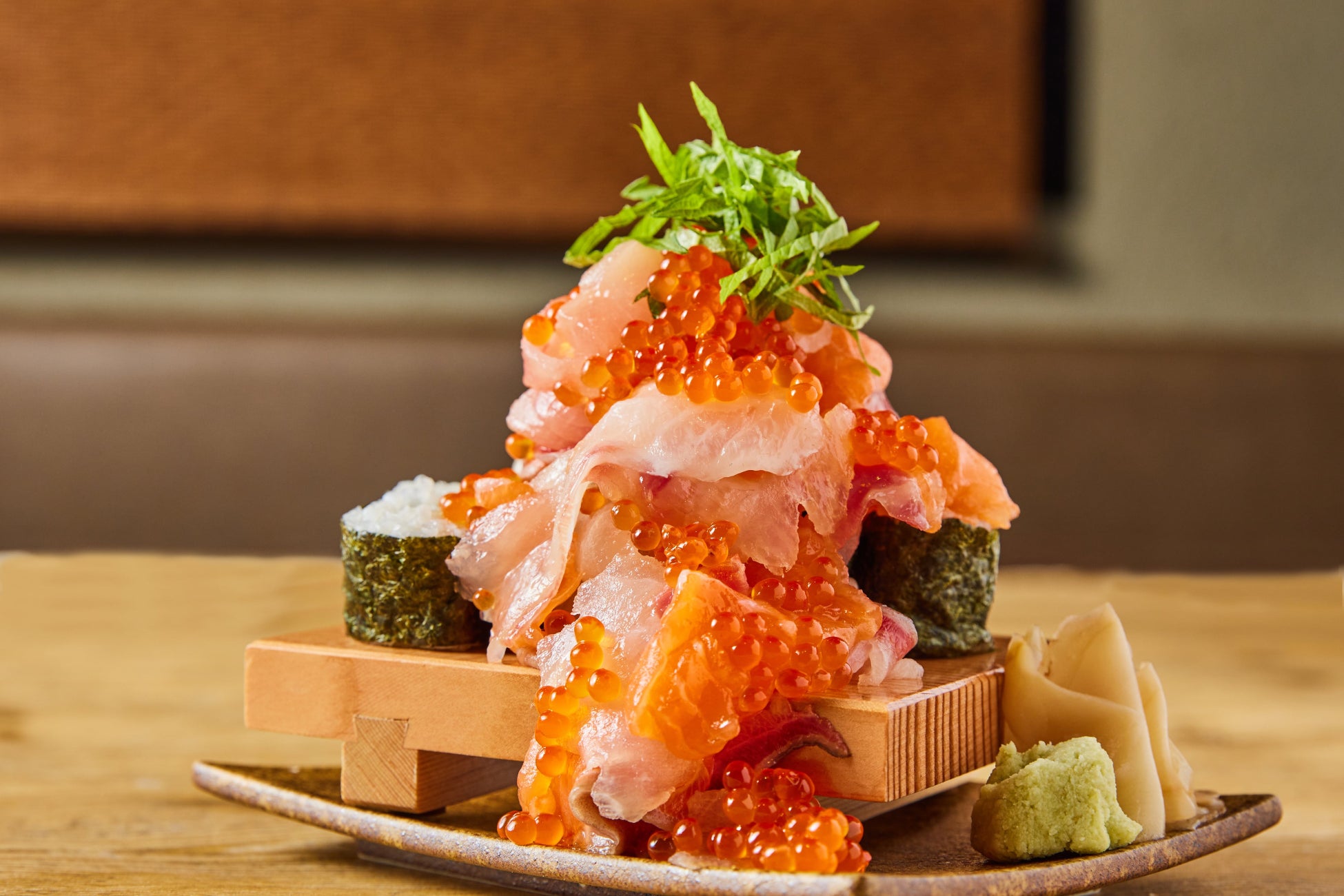 細巻きの上にマグロ・いくら・かんぱち・サーモンなど、その日仕入れた新鮮な魚をこぼれる程たっぷり乗せた、見た目も迫力満点なイチオシメニュー!