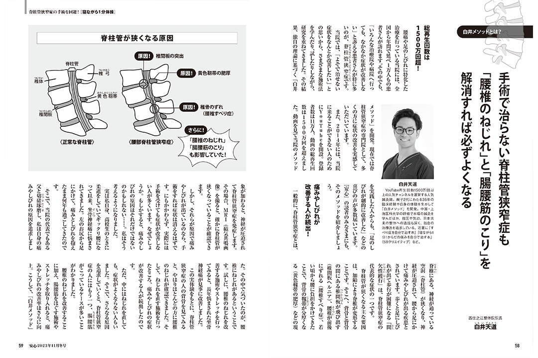 ・手術で治らない脊柱管狭窄症も「腰椎のねじれ」と「腸腰筋のこり」を解消すれば必ずよくなる